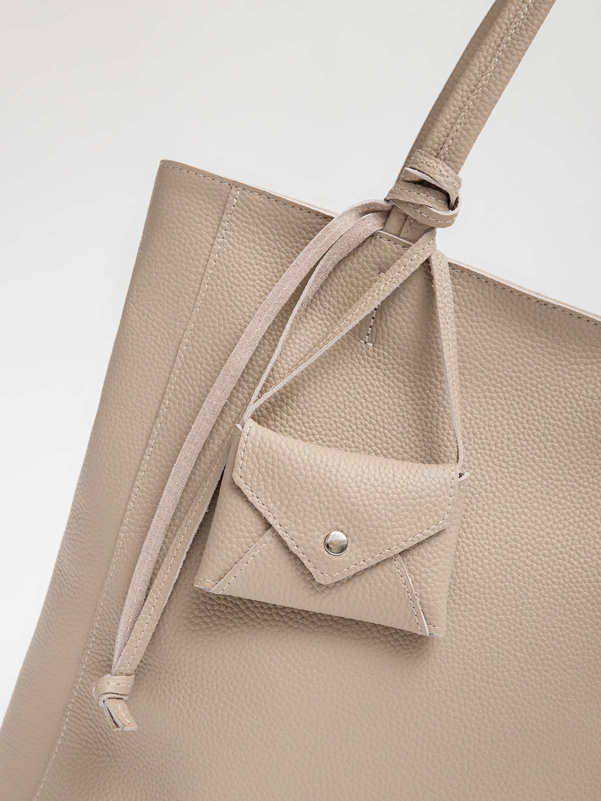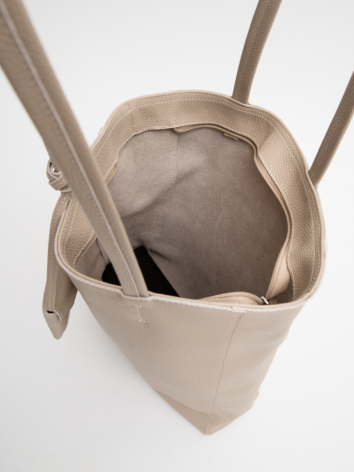 Шоппер размера L из натуральной кожи — просторная сумка для ежедневного использования с молнией для защиты содержимого. Длинные кожаные ручки удобно сидят на плече даже при полной загрузке (продукты, пляжные вещи, документы). Вместительный основной отдел без подклада дополнен съёмной сумкой-вкладышем (из оксфорда) — можно использовать как органайзер. Идеальная модель для тех, кто выбирает «умную» вместительность вместо громоздких конструкций.