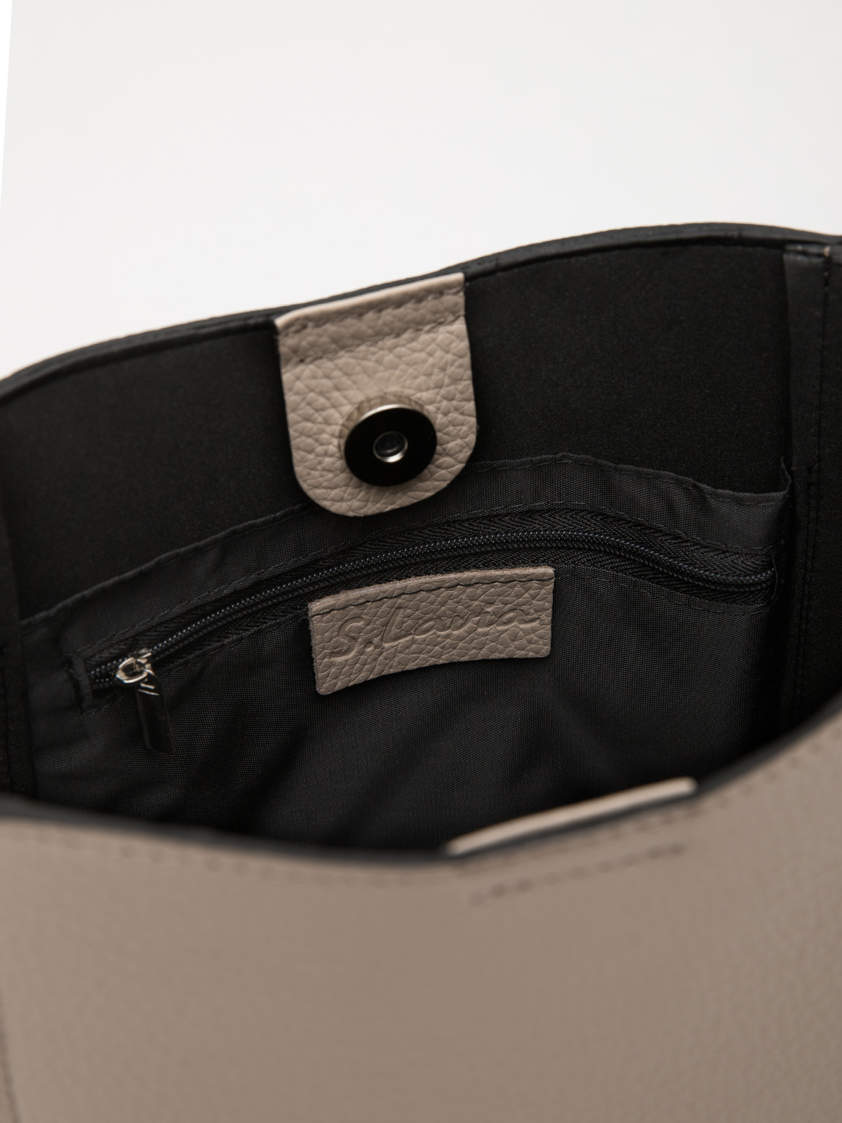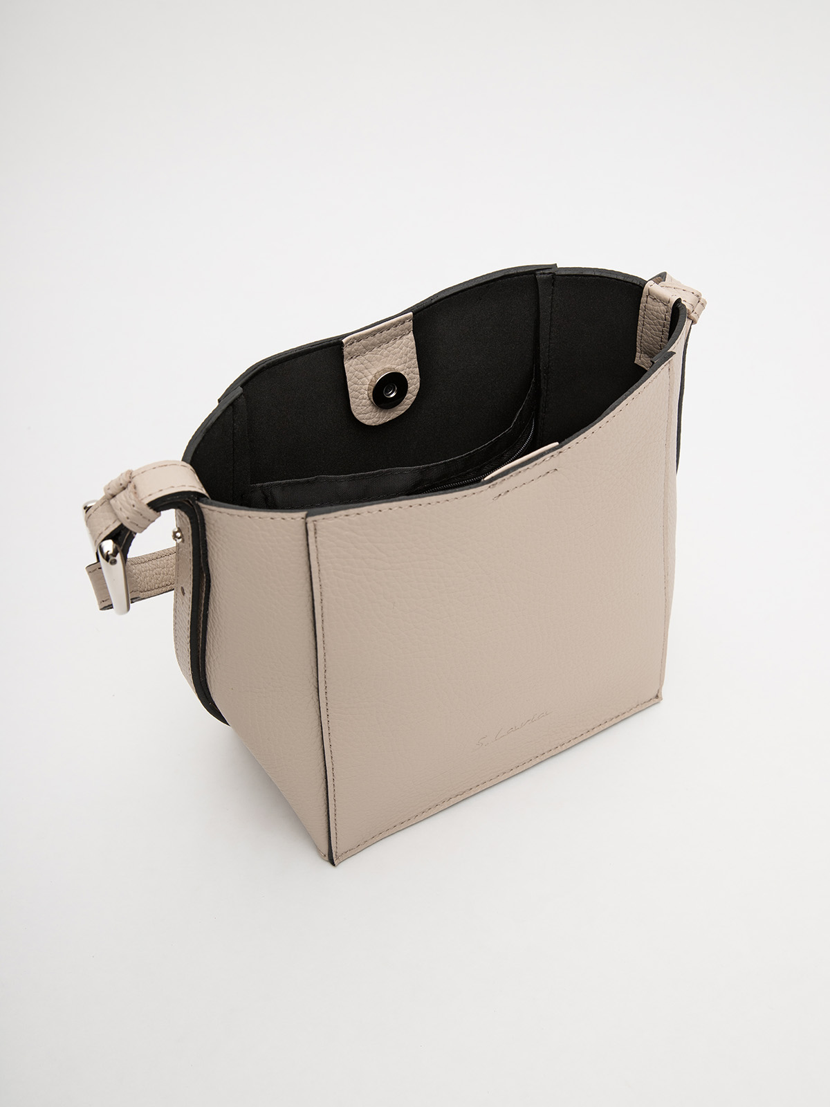 Модель выполнена с одним основным отделением, закрывающимся на кнопку, что обеспечивает надежность и аккуратный внешний вид. Внутри расположены практичные карманы, которые помогают удобно организовать все необходимые мелочи — от телефона до ключей и косметики.