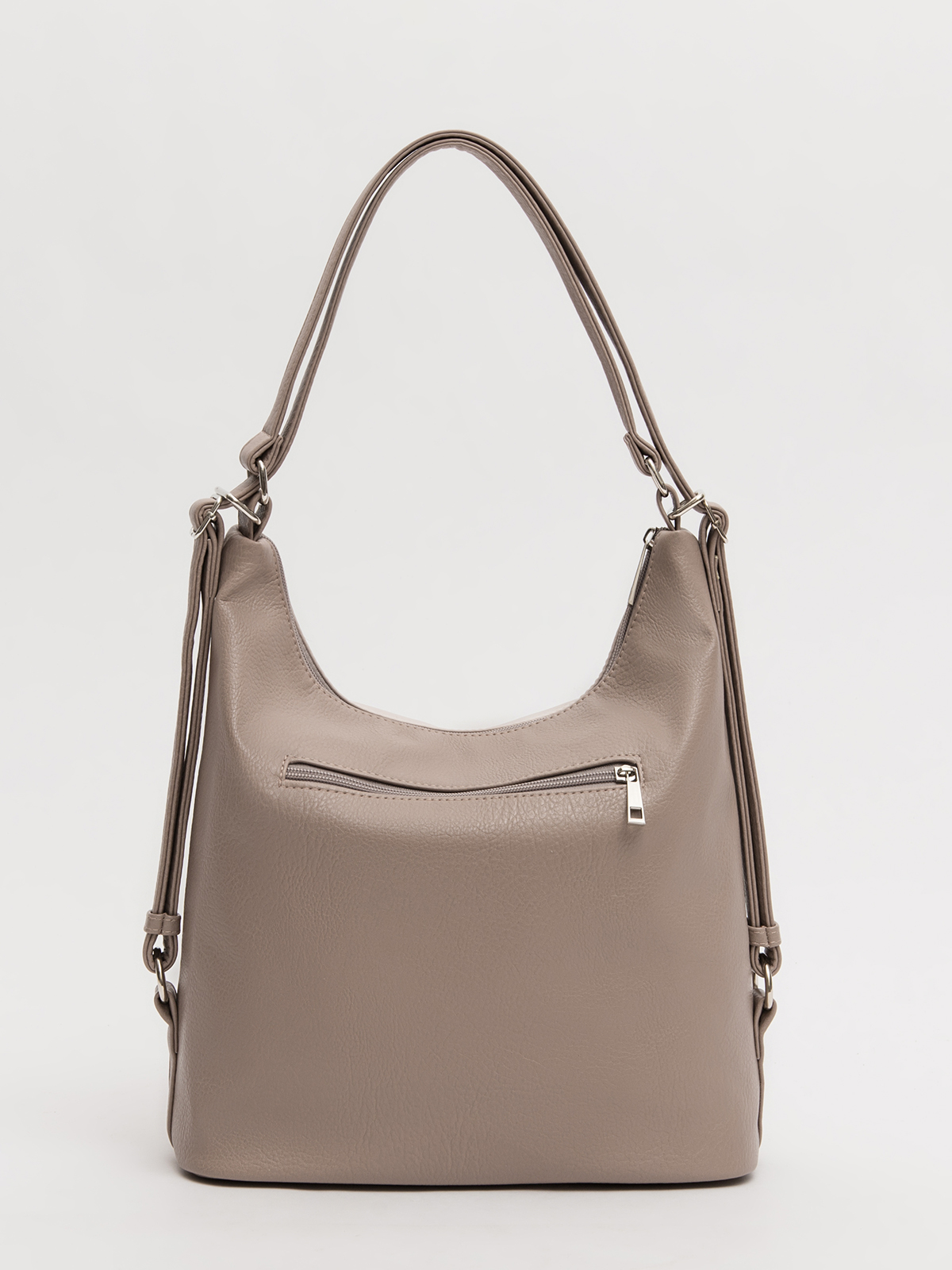 Универсальная сумка-мешок трансформер размера L — идеальный спутник для динамичной повседневной жизни. Благодаря регулируемым лямкам на пряжках она легко превращается из стильной сумки-хобо в удобный рюкзак, подстраиваясь под ваши потребности. Практичный дизайн включает отдел на молнии, два вертикальных кармана спереди и дополнительный карман сзади для безопасного хранения мелочей. Внутри вас ждёт продуманная организация: два кармана на молнии для ценных вещей и открытый карман для быстрого доступа. Сдержанный стиль и многофункциональность делают эту сумку must-have для тех, кто ценит комфорт и эстетику.