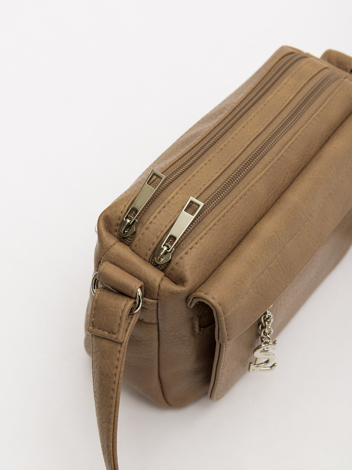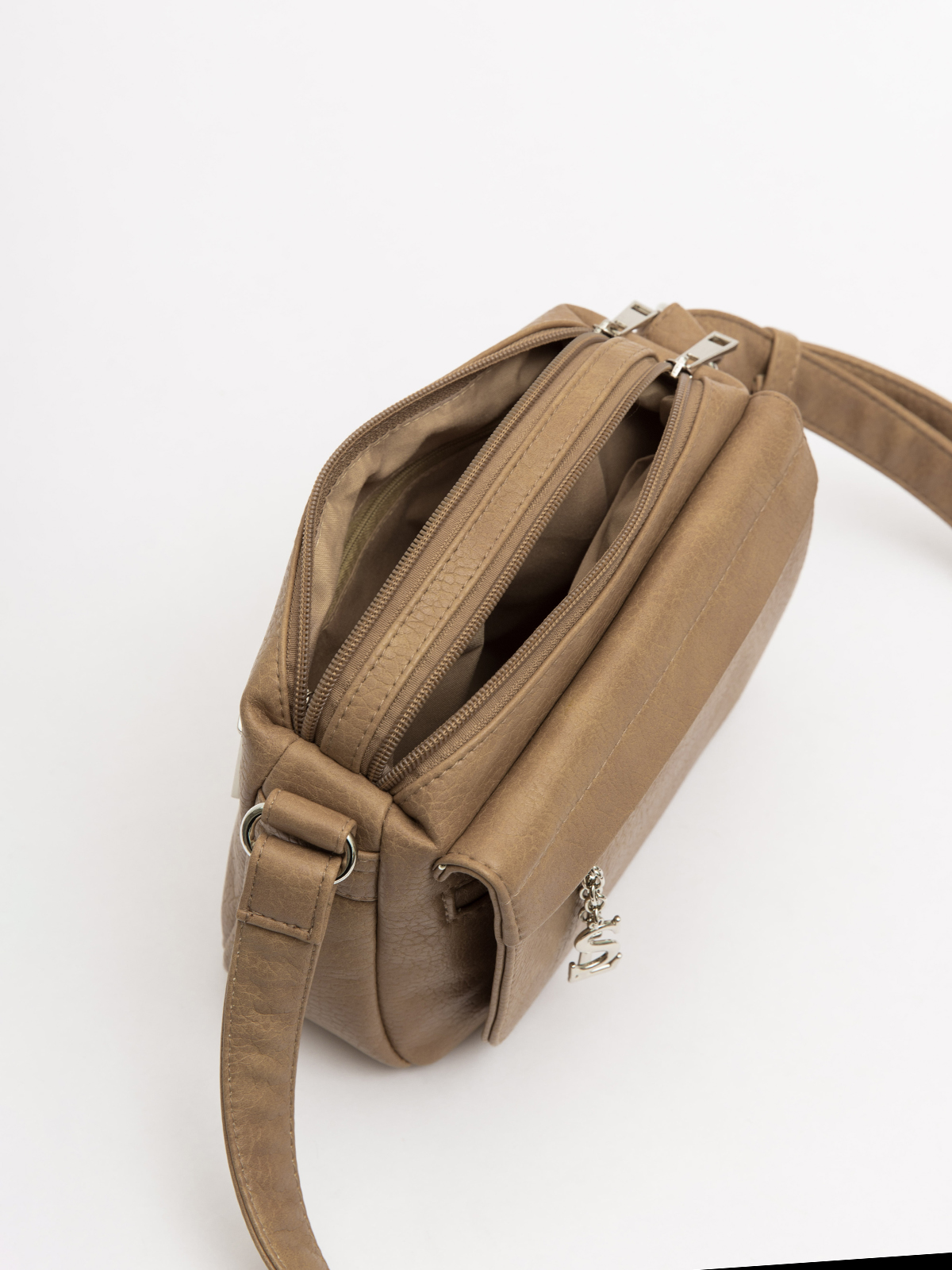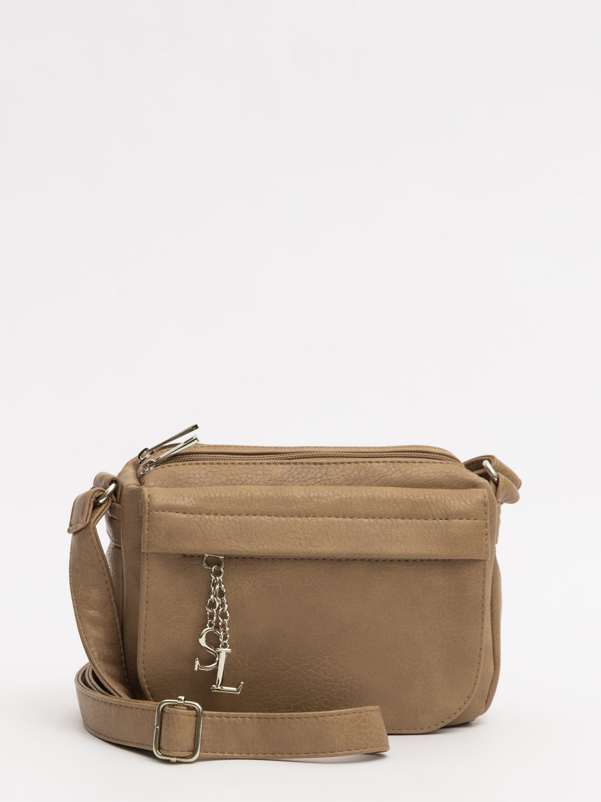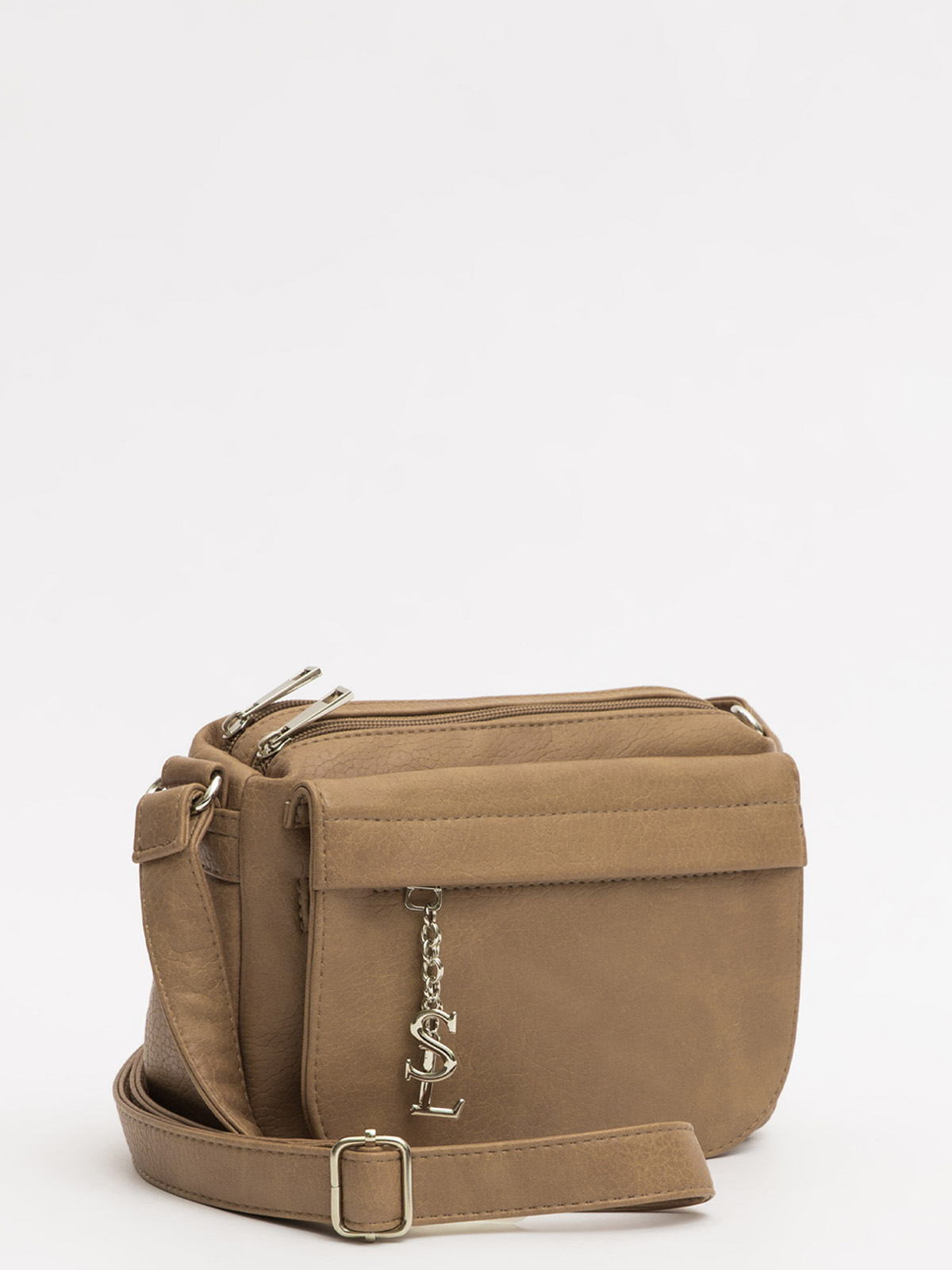 Сумка привлекает внимание стильным карманом-клапаном спереди: вход скрыт декоративной планкой, а сам карман на молнии украшен металлической подвеской с логотипом SL на изящных цепочках. Два основных отделения с молниями в тон делают модель универсальной — она легко сочетается с любым образом, сохраняя лаконичность. Несмотря на компактный размер, сумка удивительно вместительна за счет множества карманов, позволяя удобно разложить все необходимое. Длинный регулируемый ремень предлагает свободу выбора: носите её через плечо или укоротите для ношения на одном плече — в любом случае она останется удобной и стильной.