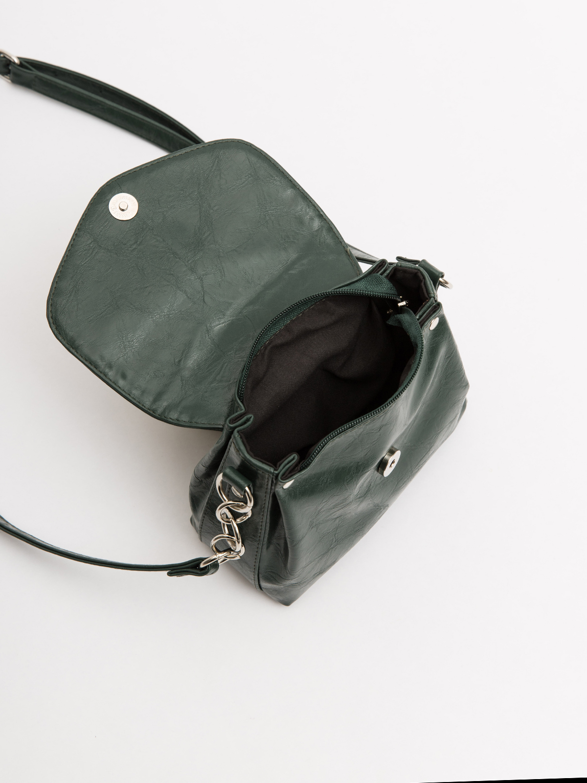 Очаровательная миниатюрная кросс-боди S-размера – элегантное решение для повседневных образов. Изысканные складки на верхней части придают сумке особый шарм, а двойная защита – клапан на магните и молния – надежно сохранит ваши вещи. Сзади расположен удобный карман на молнии для мелочей, а внутри – аккуратный карман-слот для телефона. Стильный ремень с декоративными кольцами регулируется по длине, позволяя носить сумку на любом удобном уровне. Идеальный вариант, когда нужны только самое необходимое – в безупречном дизайне!