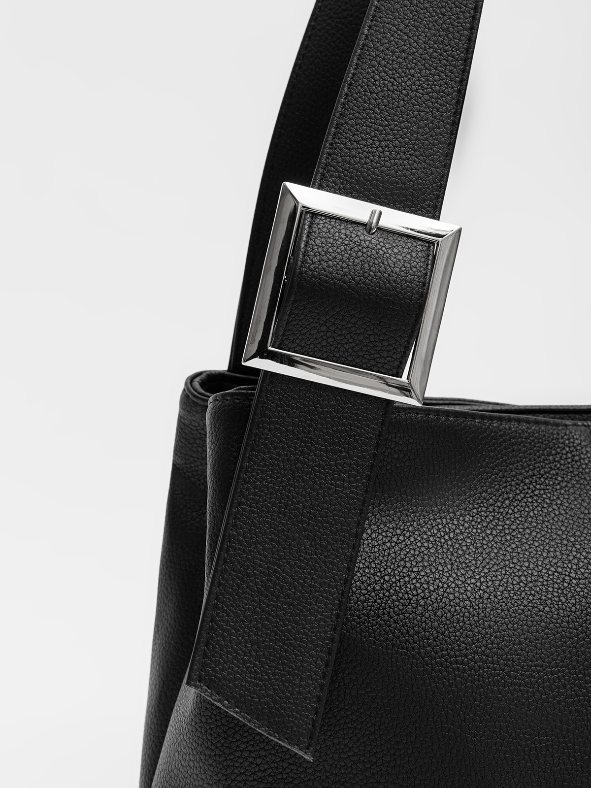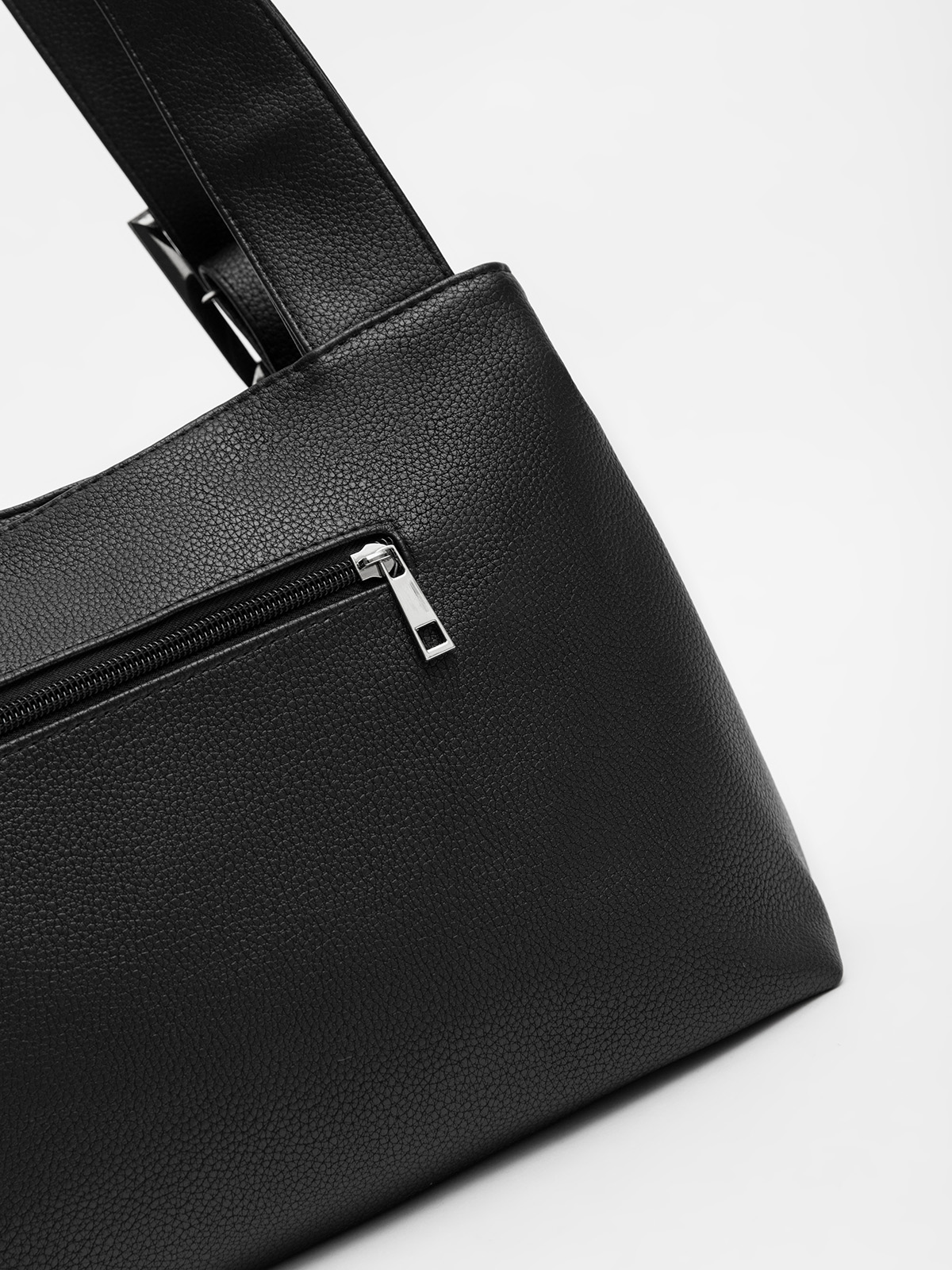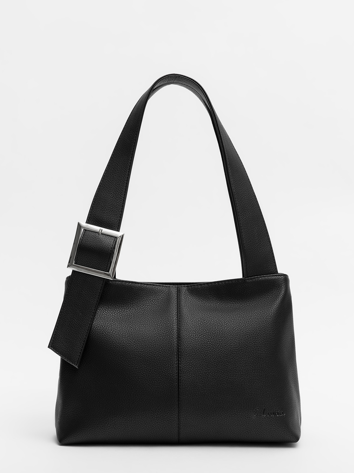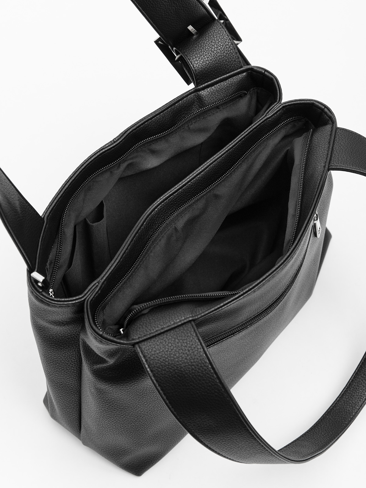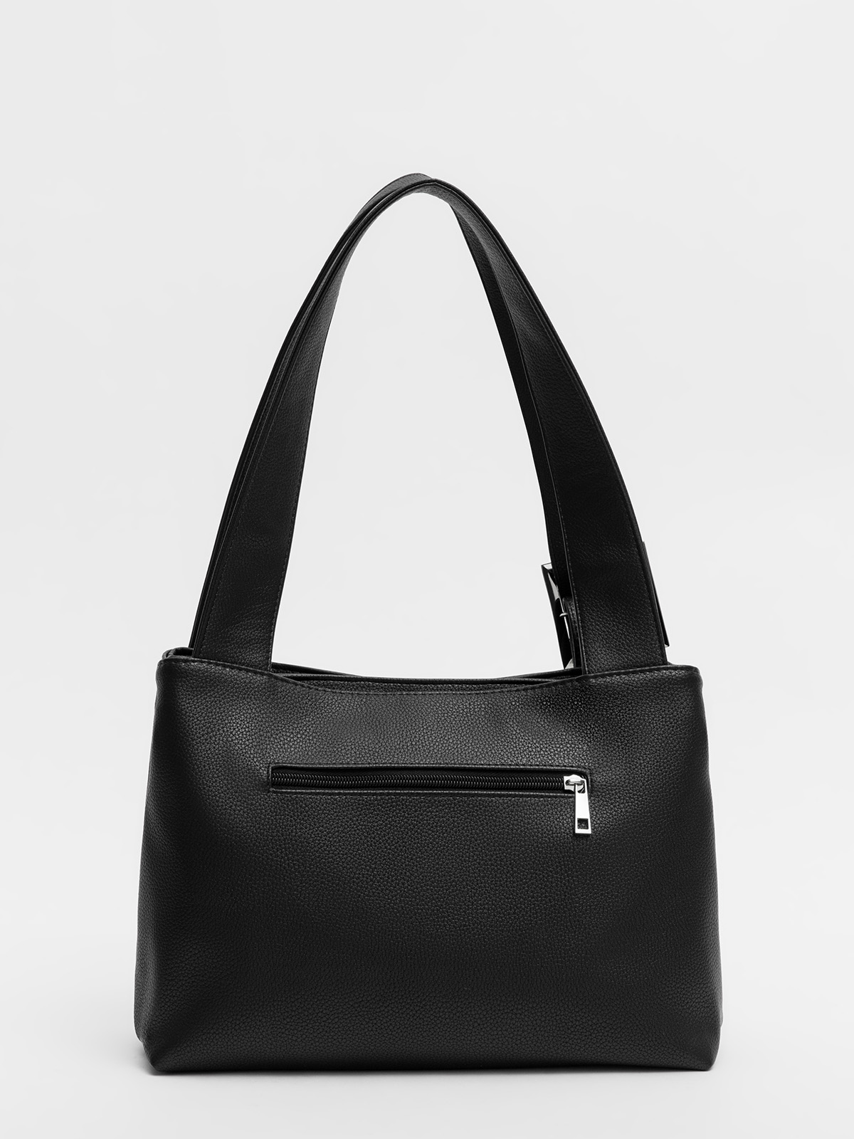 Сумка-тоут среднего размера — универсальная модель для повседневного использования. Оснащена двумя отдельными отделениями на молниях, что обеспечивает удобную организацию содержимого. Плоские широкие ручки обеспечивают комфортное ношение, а декоративная пряжка на передней части добавляет стильный акцент. На задней стороне расположен карман на молнии, внутри — практичные карманы для мелочей.