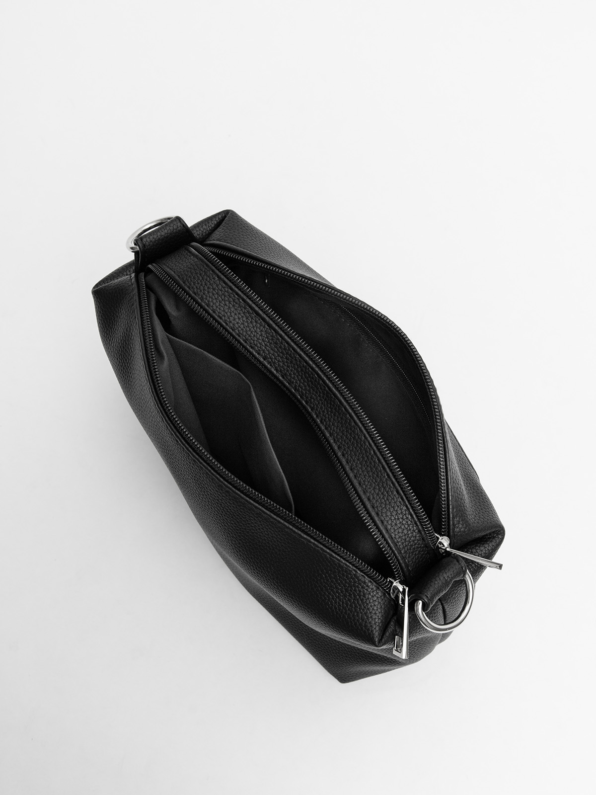 Сумка кросс-боди среднего размера — практичный и стильный аксессуар для повседневных образов. Имеет два отдела на молниях и оснащена короткой ручкой в виде косы на карабинах, а также длинным регулируемым ремнём для комфортного ношения через плечо. Внутри сумки расположены два дополнительных кармана для мелочей. Дополнительно предусмотрен удобный задний карман на молнии.