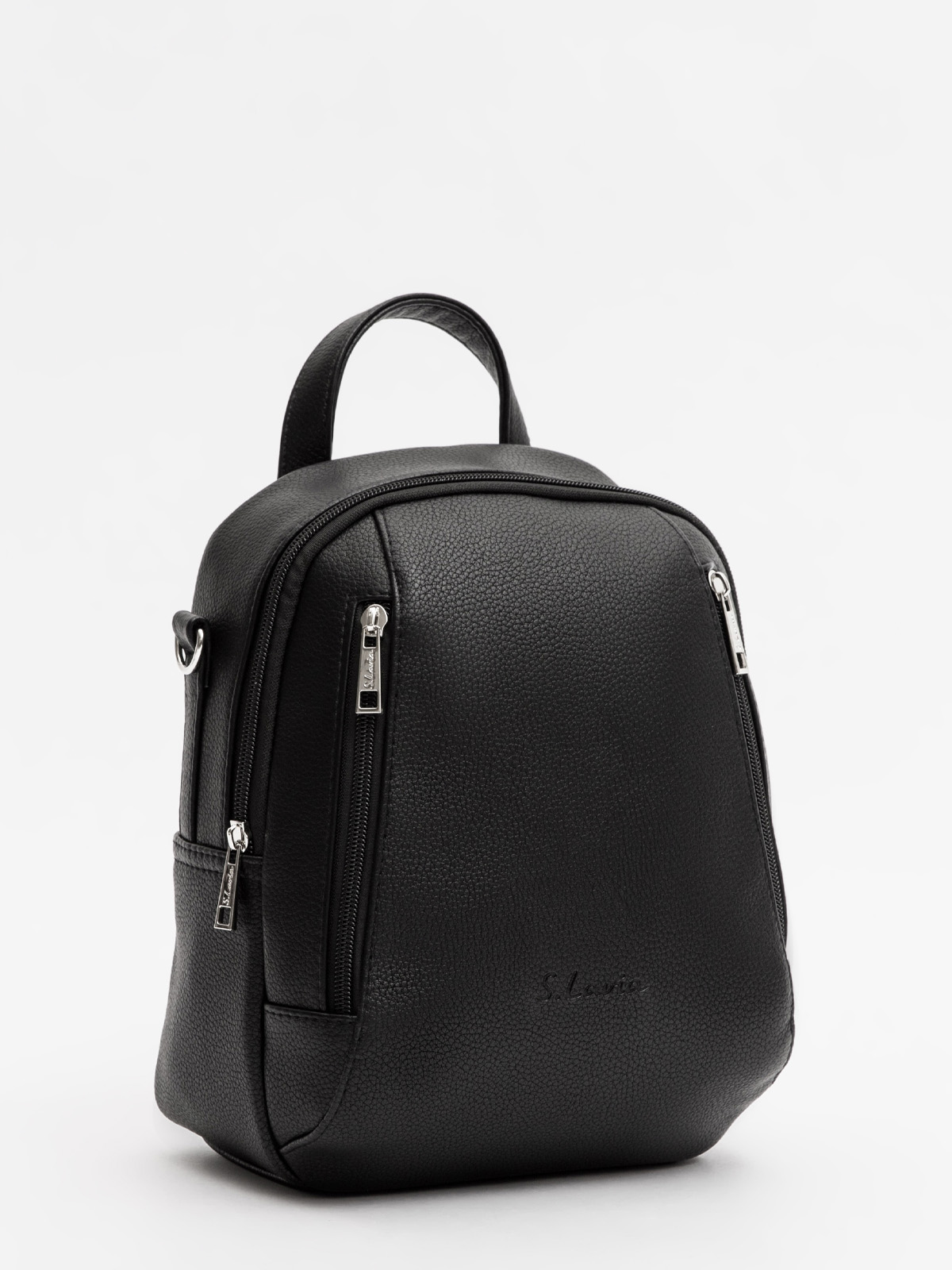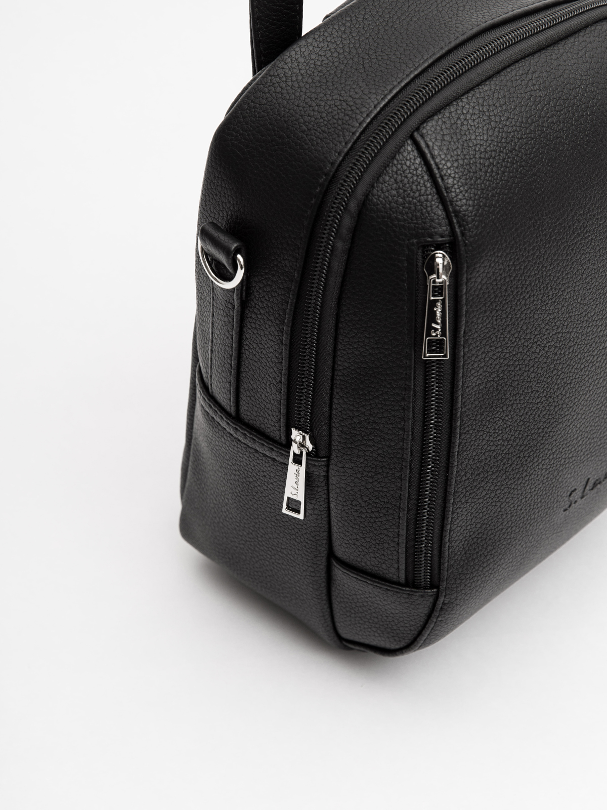 Аккуратный скругленный силуэт, слегка сужающийся кверху, выглядит современно и лаконично. Основное отделение на молнии дополнено двумя вертикальными карманами спереди — всё необходимое будет под рукой и в идеальном порядке.