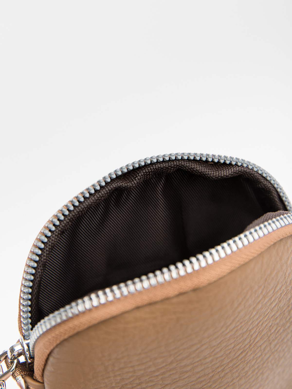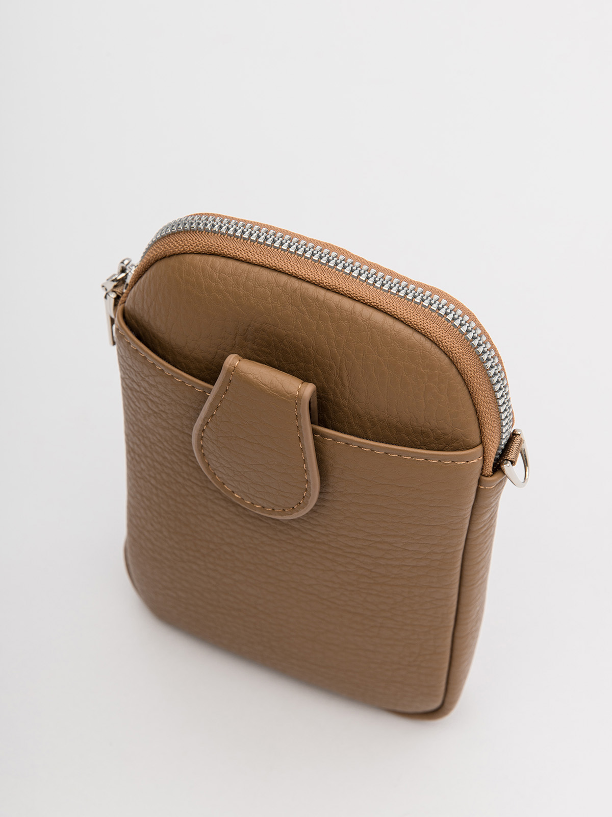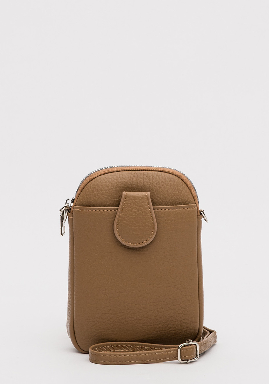 Сумка кросс-боди из винилискожи, вид застежки: на молнии. Имеет одно отделение на молнии, внешний карман под хлястиком на магните, внутренний карман открытый. В комплекте длинный регулируемый ремень. 13х19х3 см.
