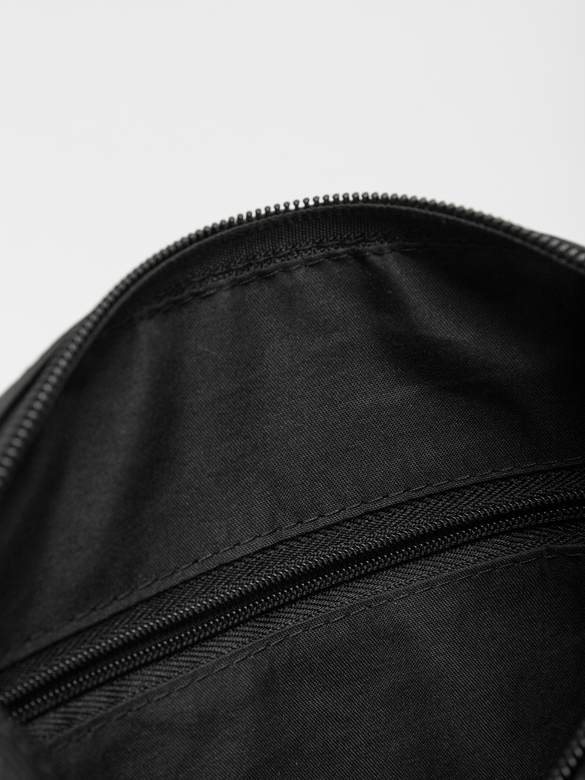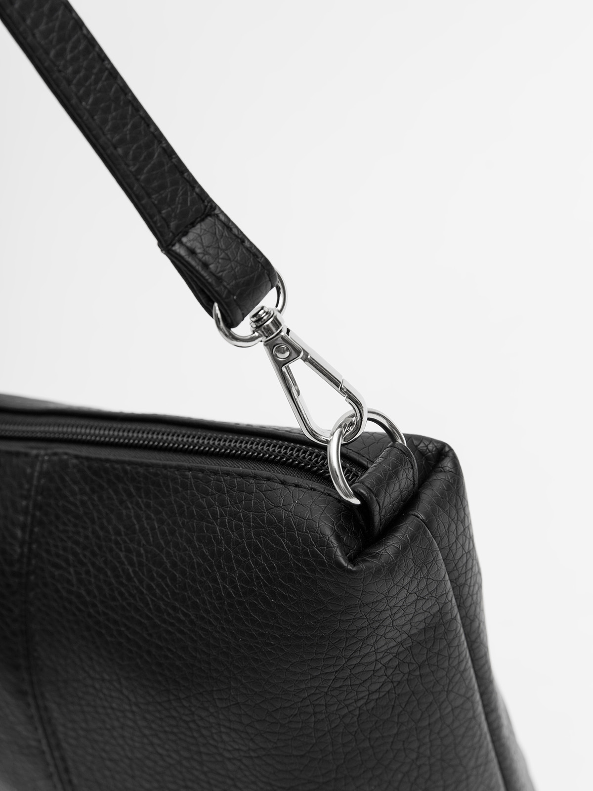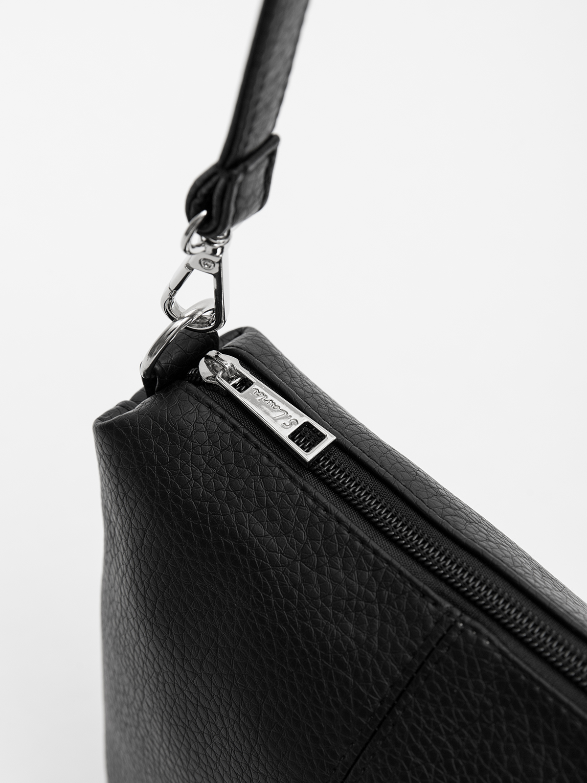 Молнии с металлическими слайдерами. Планшет оснащен ручкой и ремнем, которые крепятся к металлическим кольцам на карабины. Фурнитура серебряного цвета. На язычке молнии есть логотип компании.