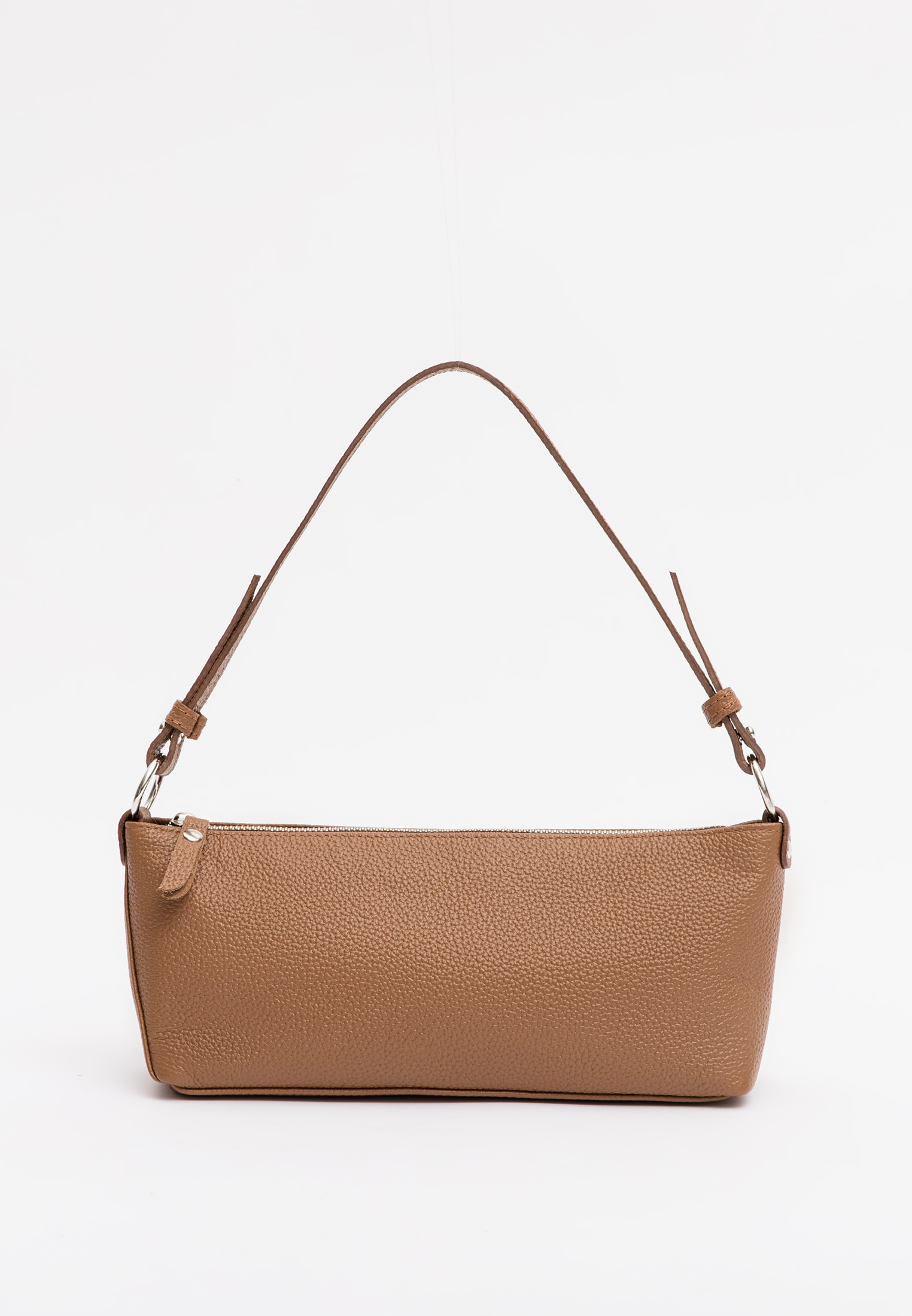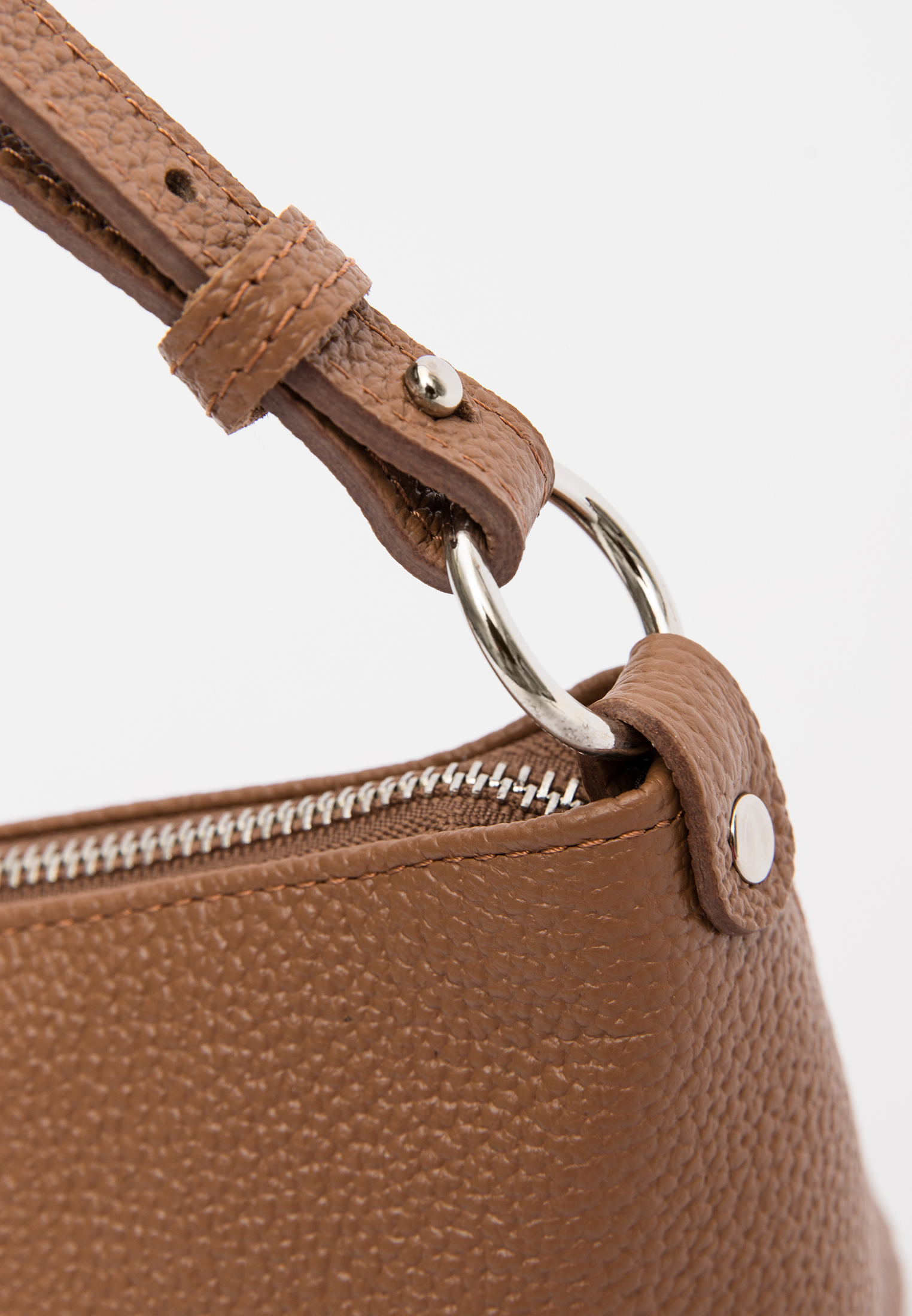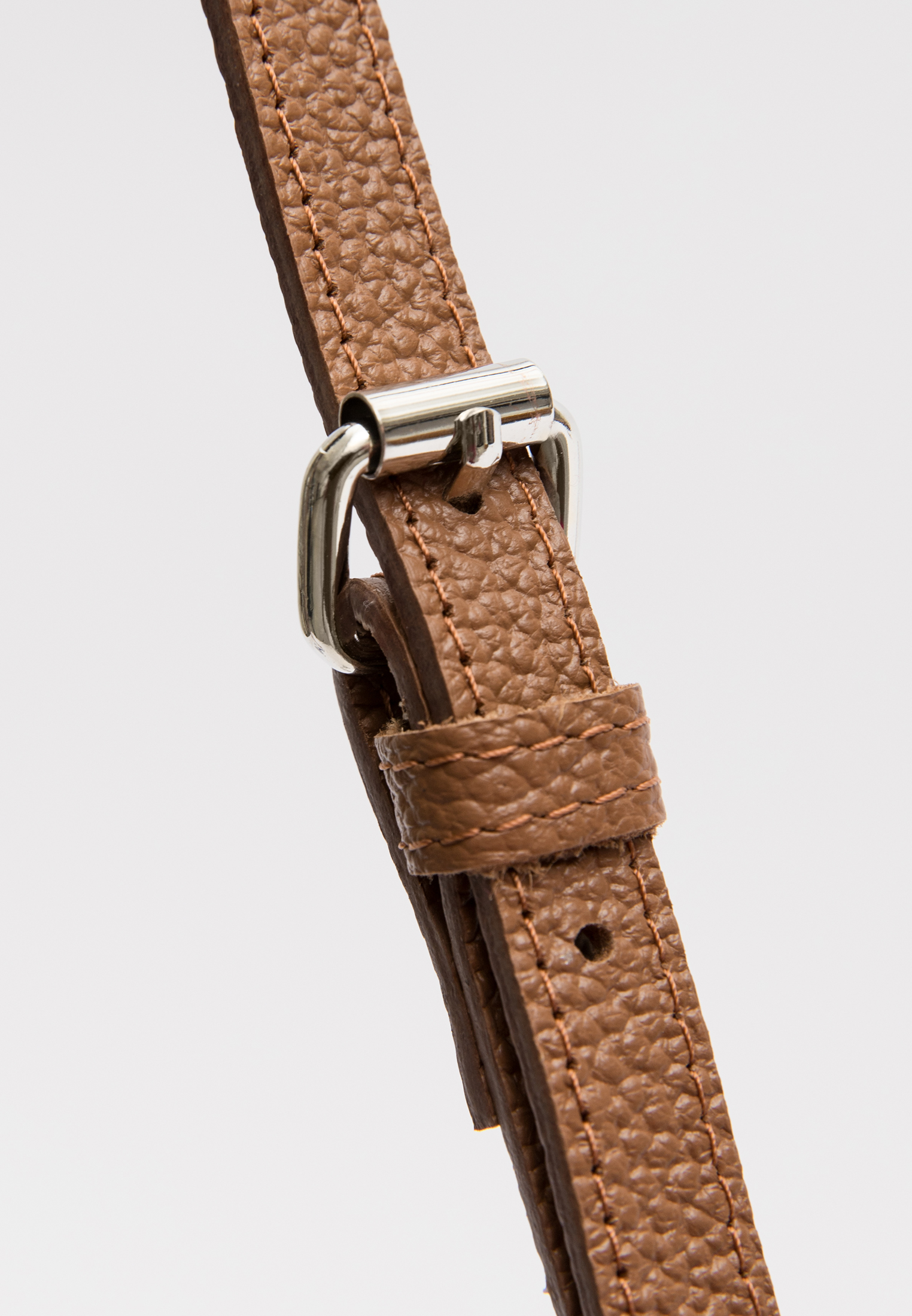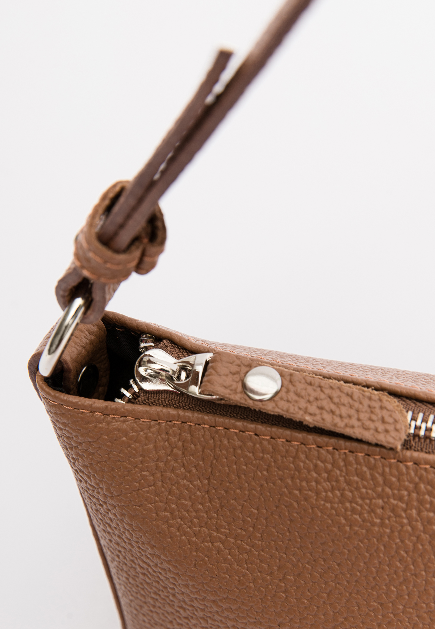 Короткий ремень – функциональный элемент в сумке, также служит декором, благодаря шлевкам и фурнитуре.